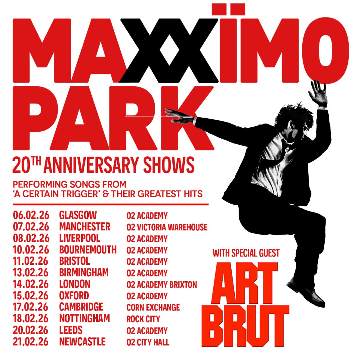 It feels like only weeks ago we were letting you know the fine news that Art Brut, Top of the Pops, are touring with Maximo Park across the UK in February '26, It's not the first time that our bands have shared the stage.